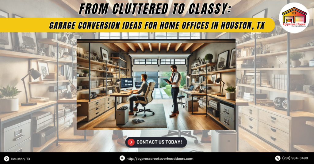 Transform your garage into a stylish home office with Cypress Creek Overhead Doors in Houston, TX. Learn how to declutter, insulate, and repair for a productive space. Contact us today for expert garage door services and conversions! Transforming your garage from a cluttered storage space into a classy home office can be a game-changer. Imagine