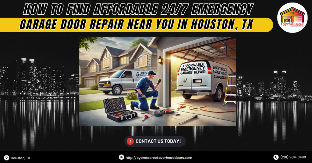 Looking for affordable 24/7 garage door repair in Houston, TX? Find trusted services fast without overpaying. Call Cypress Creek Overhead Doors today! Get Affordable 24/7 Emergency Garage Door Repair Near Me: A Stress-Free Guide for Houston Residents Have you ever been stuck with a garage door that won’t open just as you’re rushing to work?