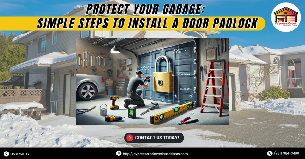 Secure your garage today! Follow our step-by-step guide to installing a padlock on your garage door, with expert advice from Cypress Creek Overhead Doors in Houston, TX. Is Your Garage Door Leaving Your Home Vulnerable? When protecting your home, you might not immediately think about your garage door—but you should. Garages are often a weak